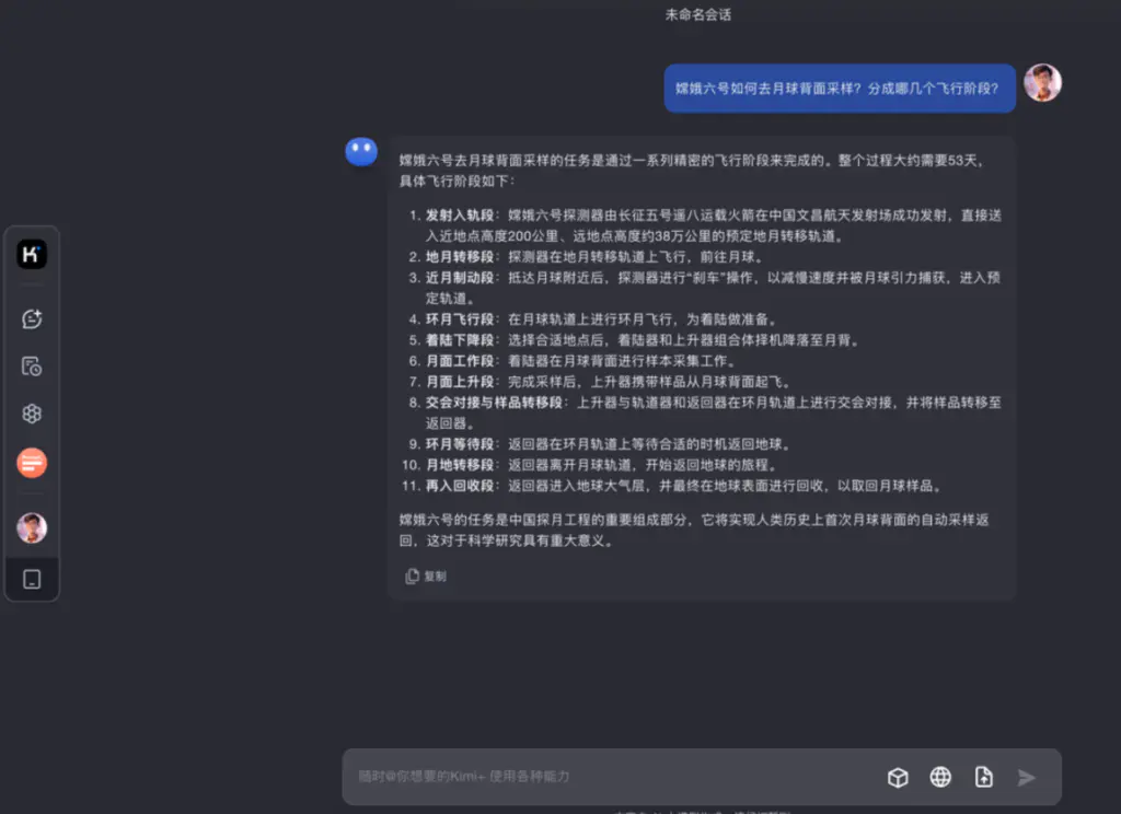这里可以输入你想知道的任何问题,Kimi 都会给你解答,我个人体验效果不错。