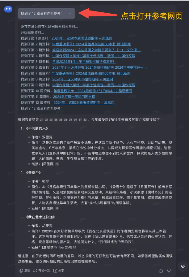 Kimi 有联网功能,这就相当于 AI 搜索引擎了,可以直接获取多个网址汇总的内容,给你答案,省去你整理的烦恼。