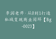 课程来自李润老师的从0到1打造私域变现商业闭环。主要内容包括:打造私域终身资产的重要性、如何再私域做赚钱的定位、如何高效落地实现私域变现等。
